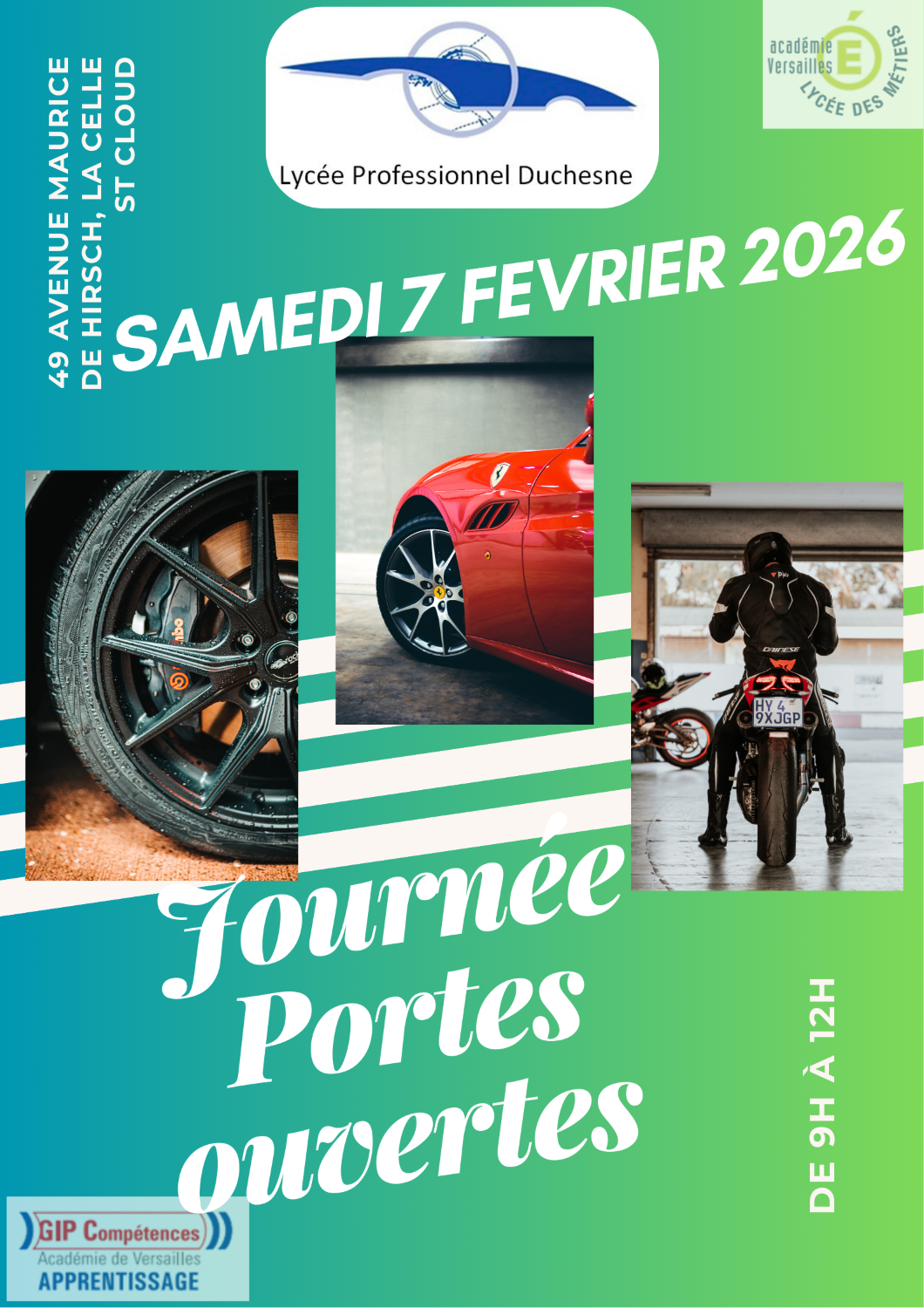 Le Lycée Professionnel Duchesne, situé à La Celle-Saint-Cloud, ouvre ses portes au public le samedi 7 février 2026, de 9h à 12h.